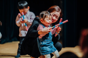 はじめて音楽に触れる小さなお友達も、2~3ヶ月経つ頃には、生き生きとした生演奏リトミックで、元気に動けるようになります♪
